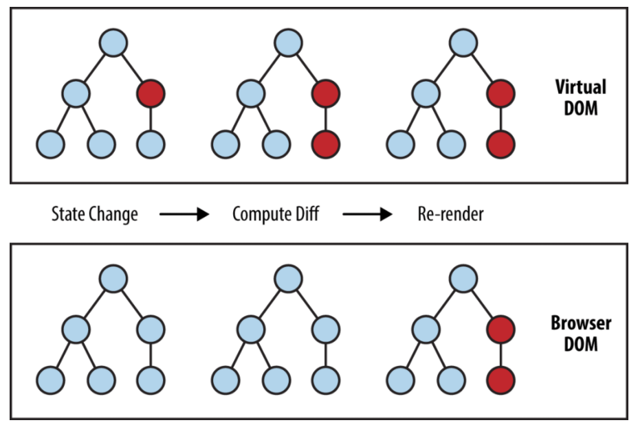 - ๋ฆฌ์กํธ๋ Real Dom๊ณผ Virtual Dom์ ์ฐธ๊ณ ํ๋ฉด์ diffing ์๊ณ ๋ฆฌ์ฆ์ ์ด์ฉํด ๋ณํ๊ฐ ์ผ์ด๋ DOM ์์๋ง ์๋ก ๋ ๋๋งํจ